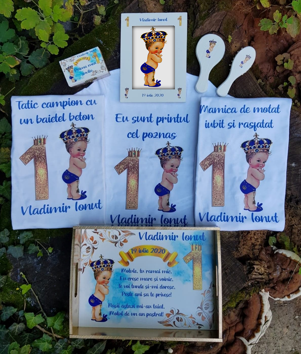 Prețul afișat include setul de tăviță și accesorii și setul de 3 tricouri personalizate